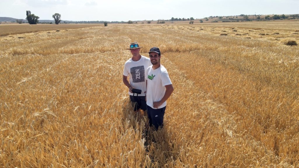 “No sé si en un futuro me dedicaré a esta parte más de investigación, pero es otra alternativa que ahí está y que estoy aprendiendo”, resalta Andrés Jiménez desde Vera del Moncayo, su pueblo natal. A sus 23 años tienen claro que quiere dedicarse a la agricultura y por eso el TFM del máster en Ingeniería Agronómica lo ha centrado en la evaluación de tratamientos en semilla contra Helminthosporium Gramineum en cebada. “Está siendo una gran experiencia porque nunca había hecho nada con ensayos”, señala Jiménez quien ha seguido de cerca los trabajos que realiza la Cooperativa San José de Sádaba. Cosechada la parcela, ahora le toca realizar el análisis estadístico. “Es algo nuevo para mí” y por ello va a contar con el apoyo de un profesor universitario. “Ya he recogido todos los datos agronómicos: humedad, peso específico, afecciones… Y ahora en septiembre empezaré con el análisis estadístico. No lo he hecho nunca” señala Jiménez. Sus palabras transmiten energía y ganas de aprender.